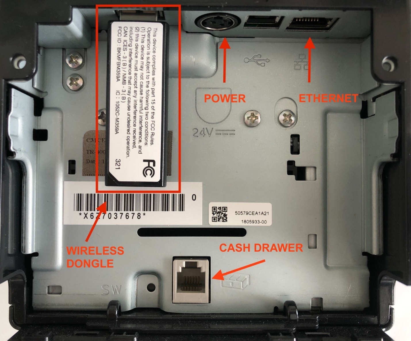 - Ensure the Ethernet cable is firmly connected behind the Printer Device.