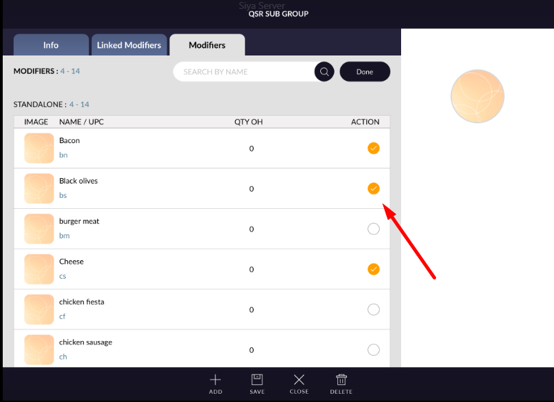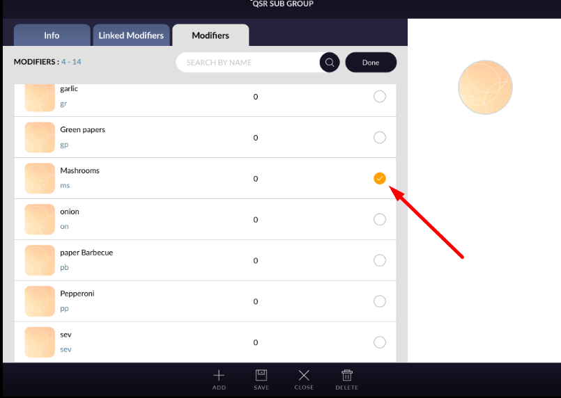 - Select modifier which you want to add in qsr sub group.