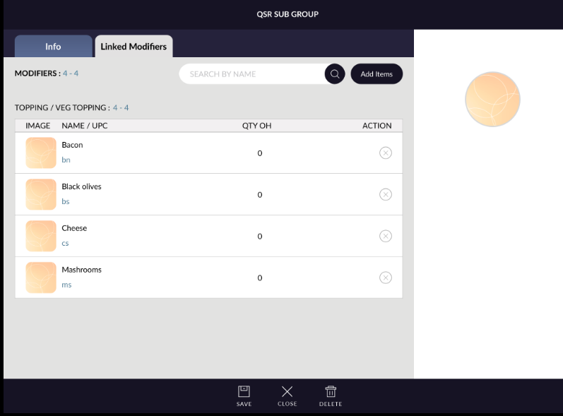- Added modifier will listed in qsr sub group linked modifier.