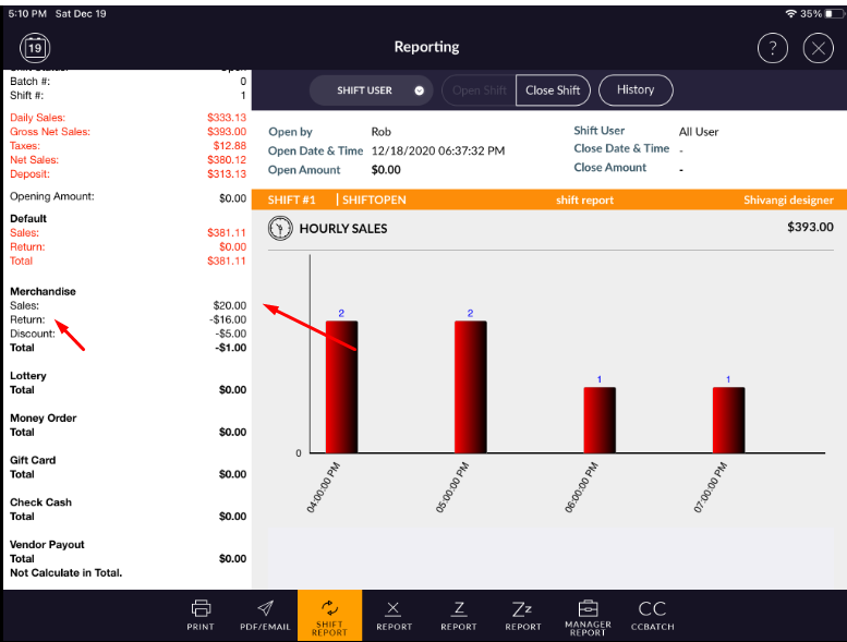 If any item refund with merchandise department then that value is consider in return section of merchandise department.