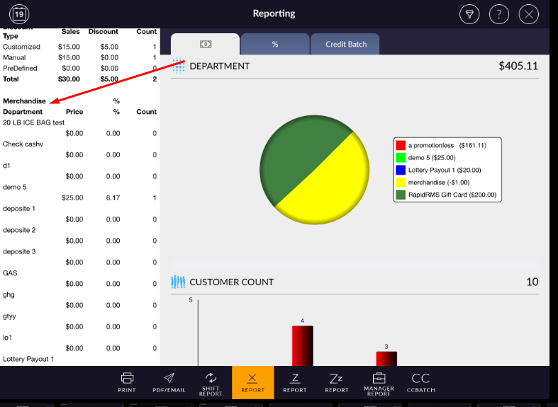 If department type is merchandise and that belonging items are sale then that all items price are consider in merchandise department section.