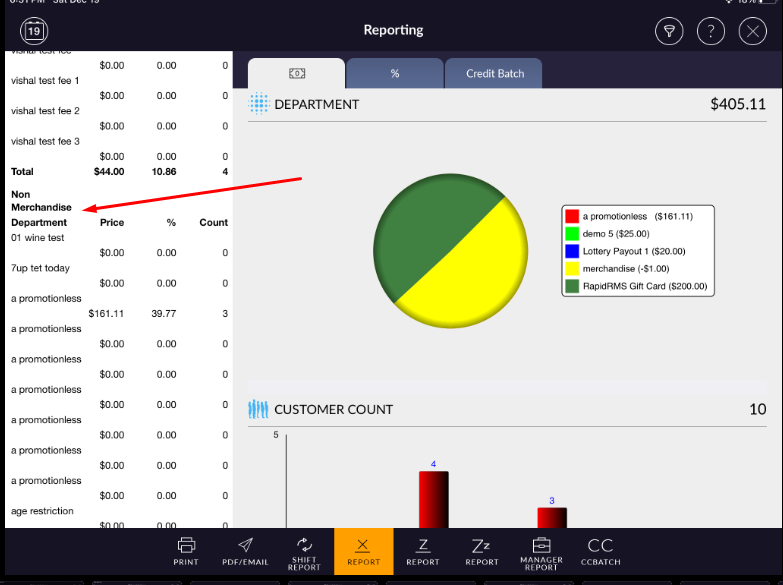 How merchandise and non merchandise department differentiated in report ?