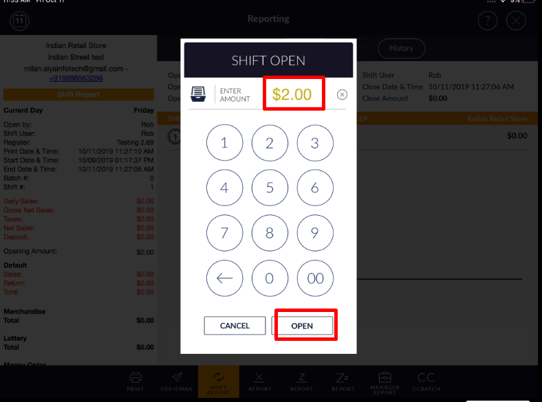 - When open shift then Pop up for opening amount would display. If you want to enter the opening amount then you can enter at the time of opening shift.