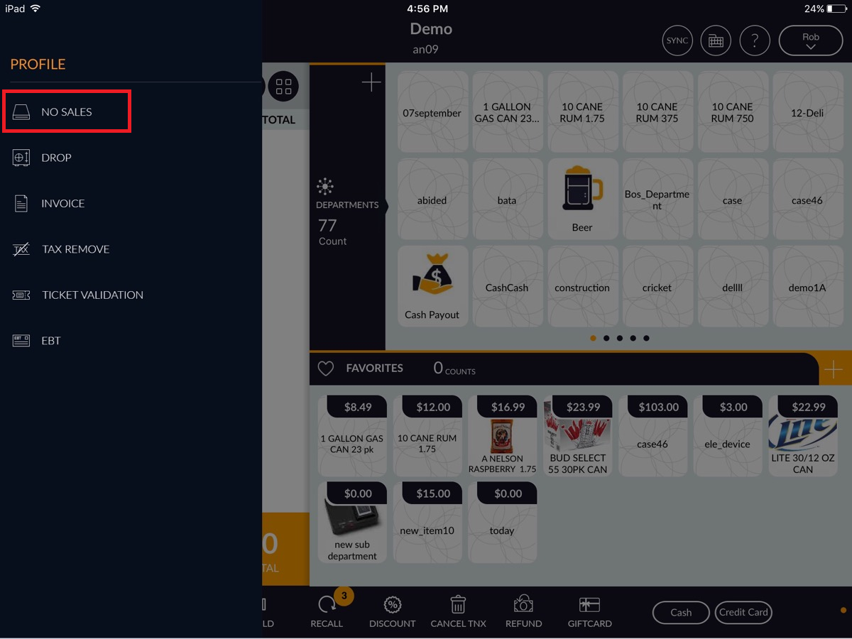 - Select the cash register icon. Enter the 4-digit password.