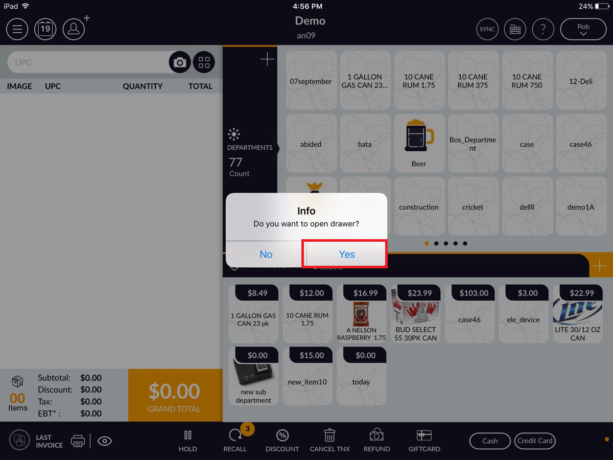 - A message will prompt you if you would like to open the cash drawer. Select Yes. Your cash drawer will