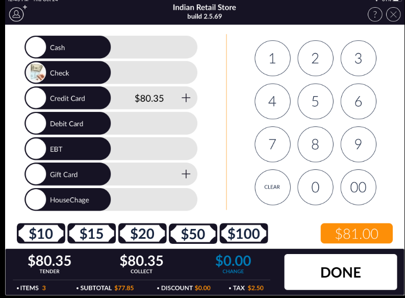 - Then, click on credit/debit in the iPad. Which is a short cut available at the bottom on the sales
