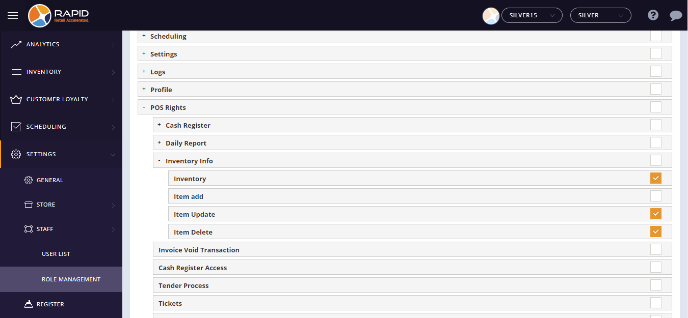 - The New RapidRMS allows you to give permission to your user to create a new item or edit or delete an existing item from Inventory Management.