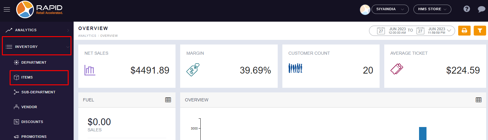 - In the Inventory section, you will find the “ITEMS” option, Click on it.