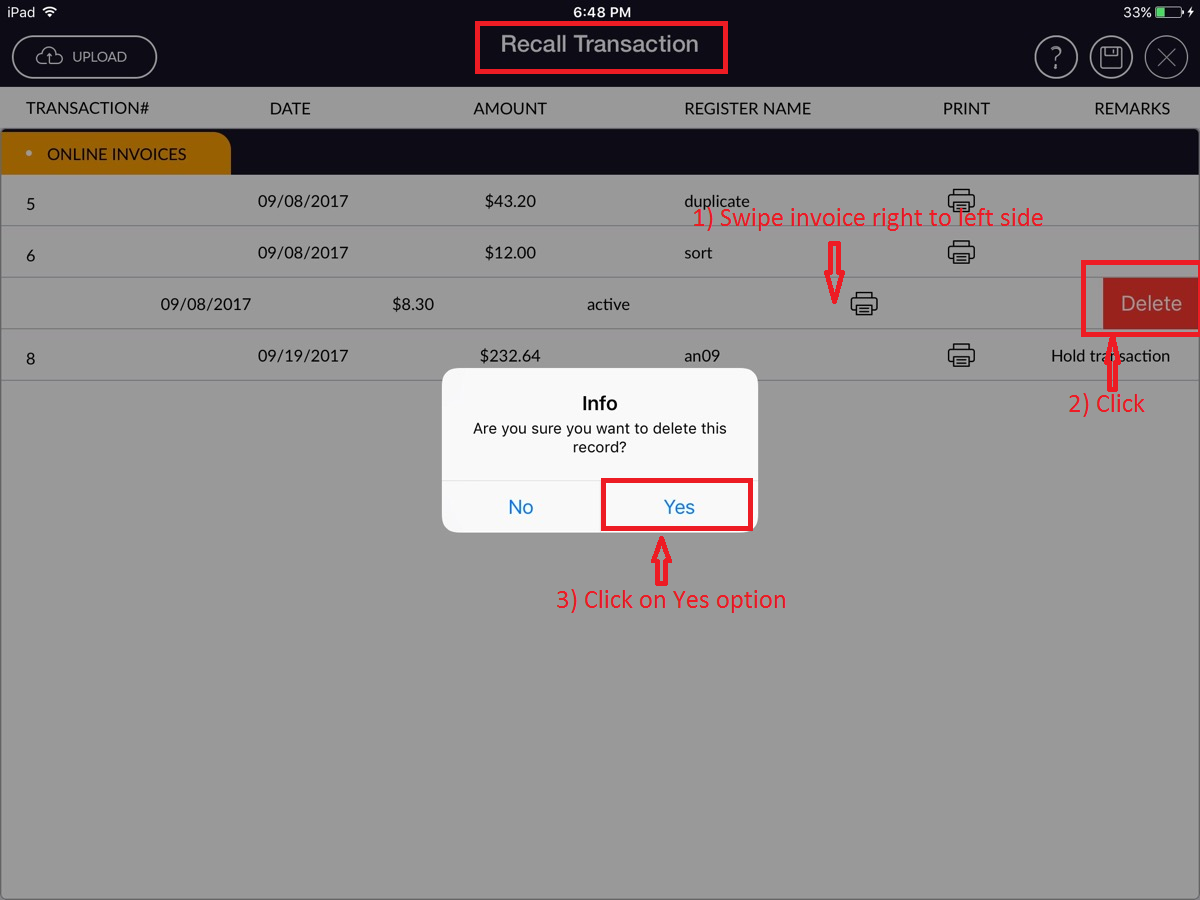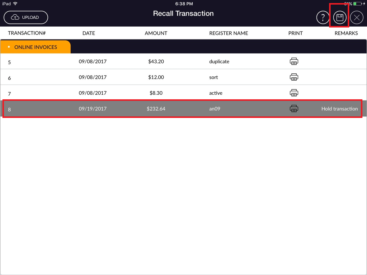 - Click on invoice which one you want to recall (want to finish transaction).
