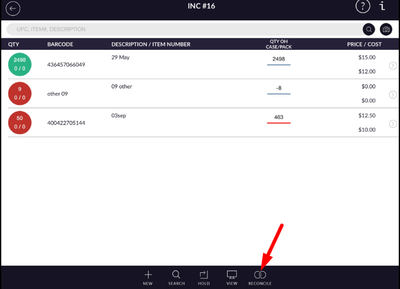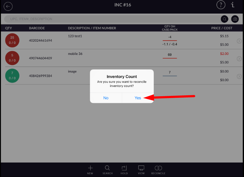 - Now apply to reconcile. If you want to change in item qty or want to add item in counting then also