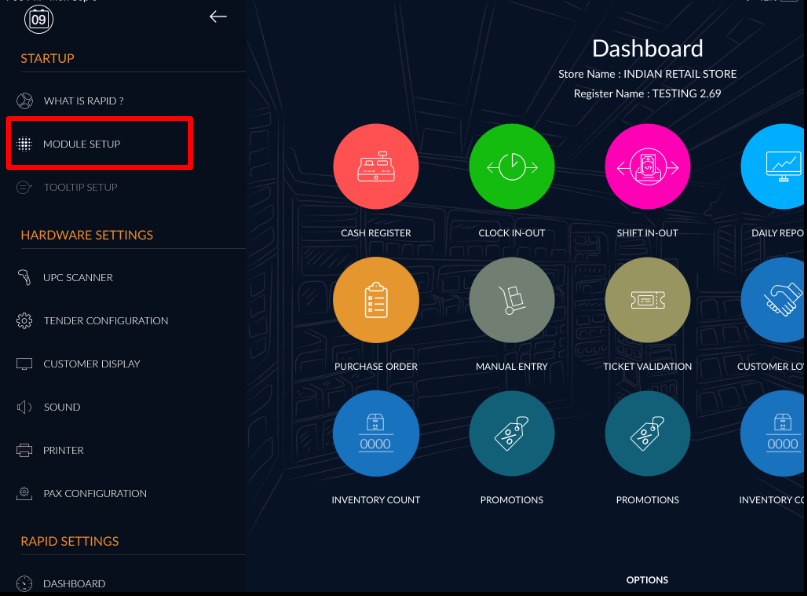 - A left-hand sidebar will appear, click on module setup.
