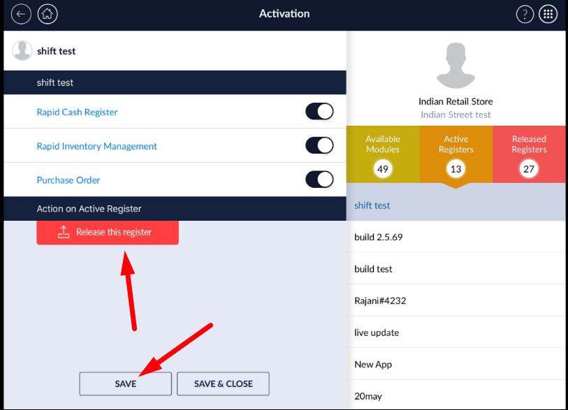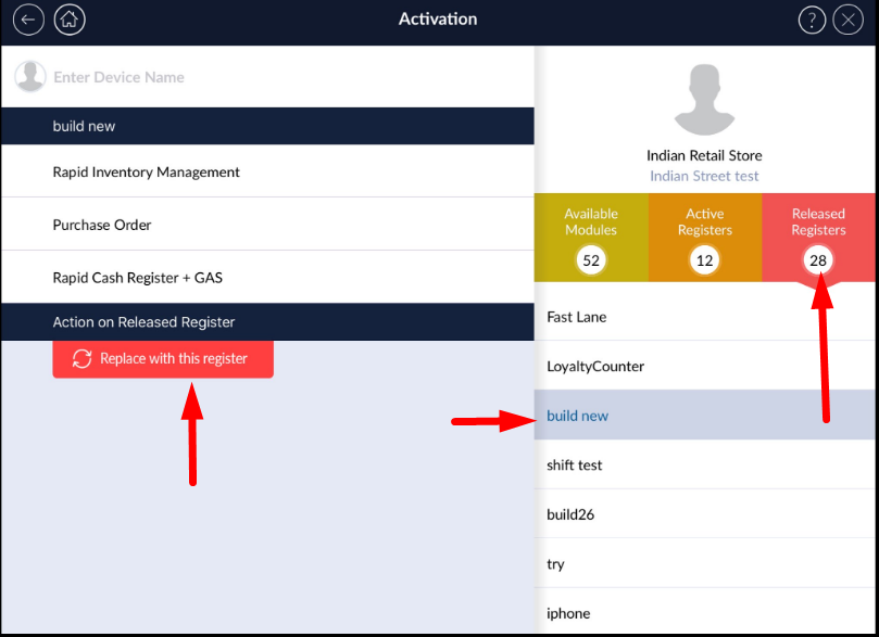 - You will now see the module activation screen. On the right, click on Active Register. Then, select which register you would like to release.