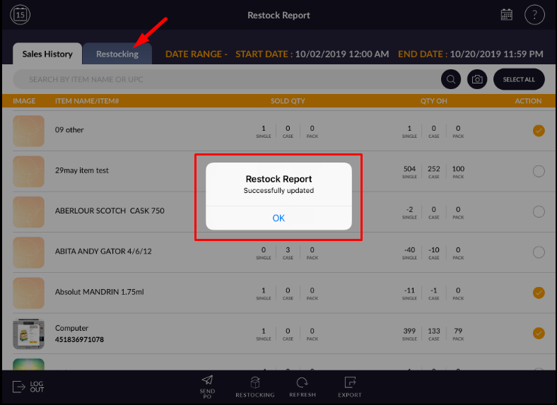 In restock report sales history all the items which are sold will display. If a store wants to again enlist