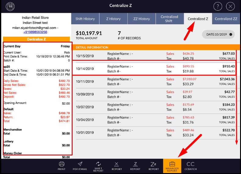 - All the Z report entry display day-wise when the last Z applied. In one entry all the z applied