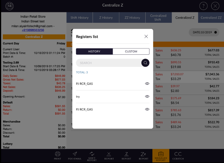 - In custom you can select different register and can view z history of applied z by that register.