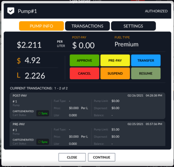 Pump fuel amount and volume will display in window.