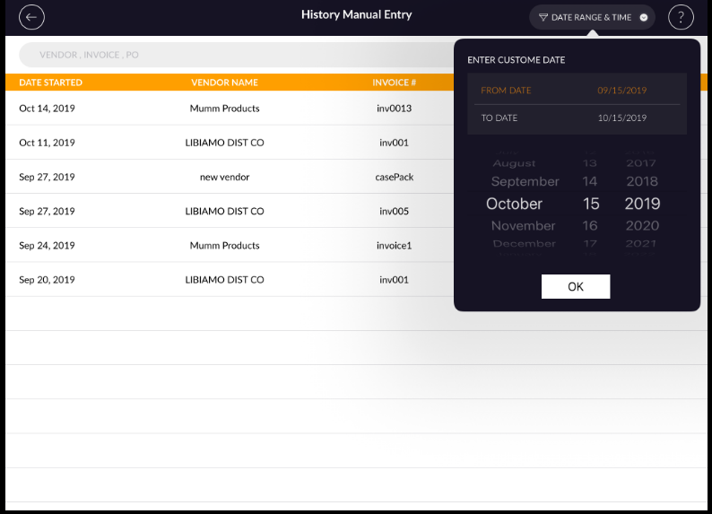 - History can be searched by date range also.