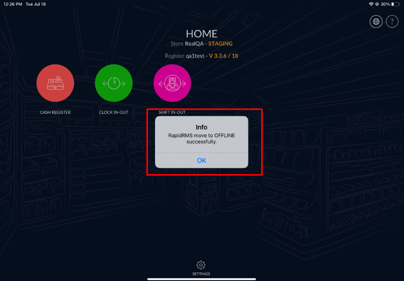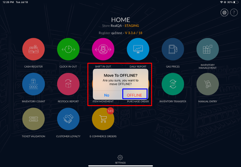- Once you click on “OFFLINE” button then RapidRMS move to OFFLINE