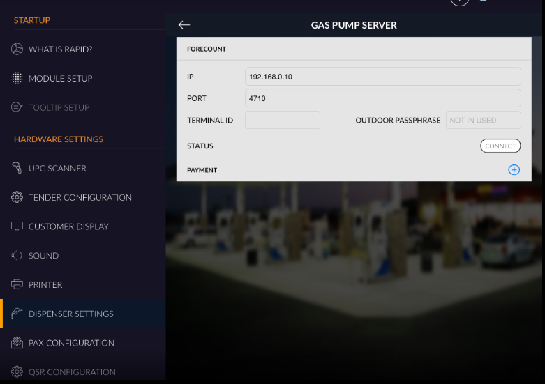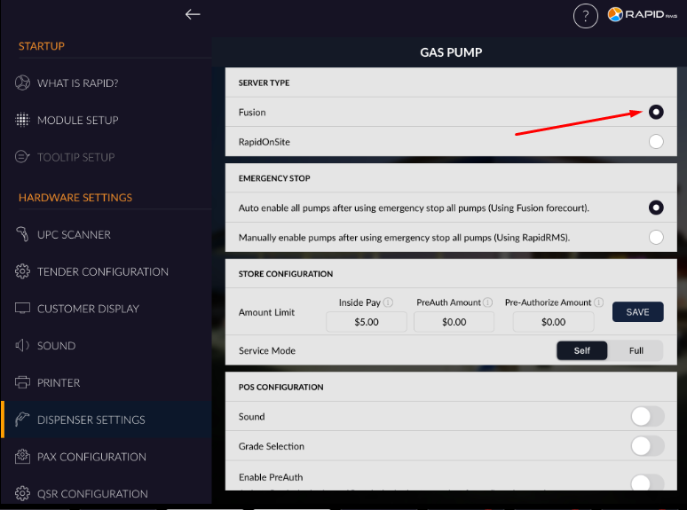 In RapidRMS setting there is one section for dispenser setting from where pump setting can be configure and