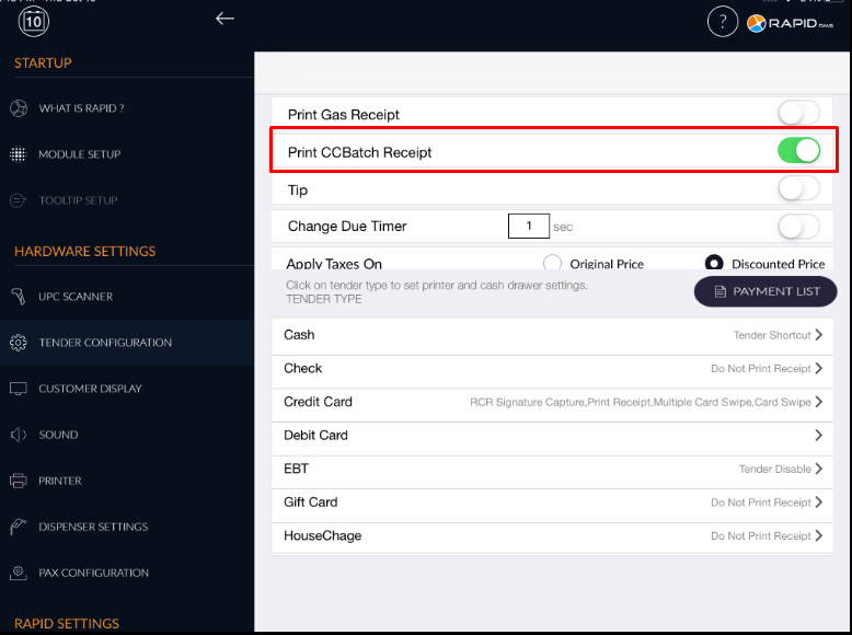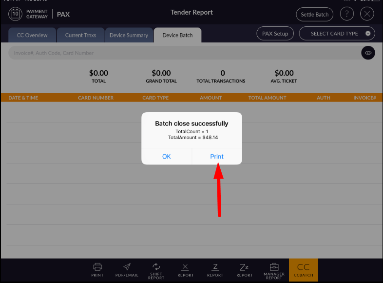 - When settle batch and a printer is connected with the application then directly receipt will print.