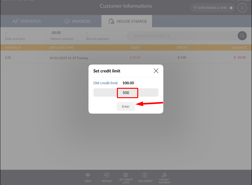 One another way to set credit limit is to add limit from customer profile by edit profile.