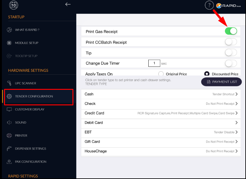 When in cash register if the transaction is of gas and after completion of the gas transaction when a user