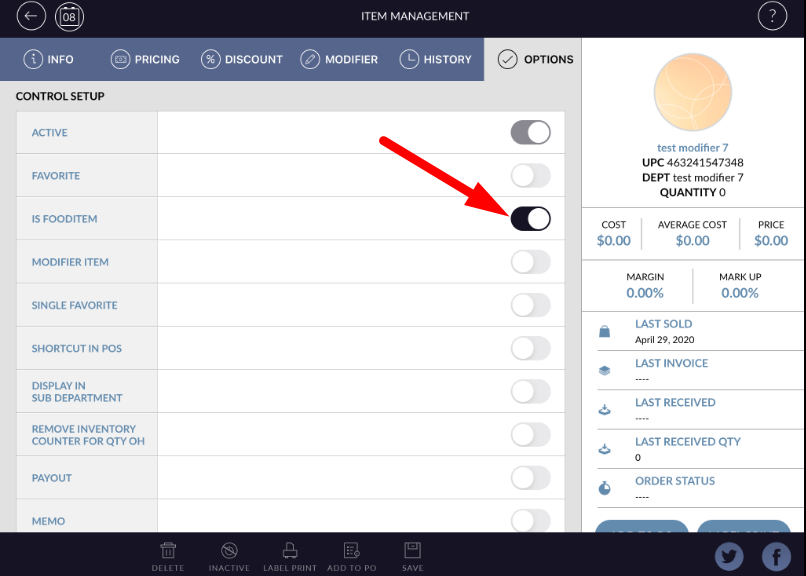 - In option section there is one option named as “Is food item”.