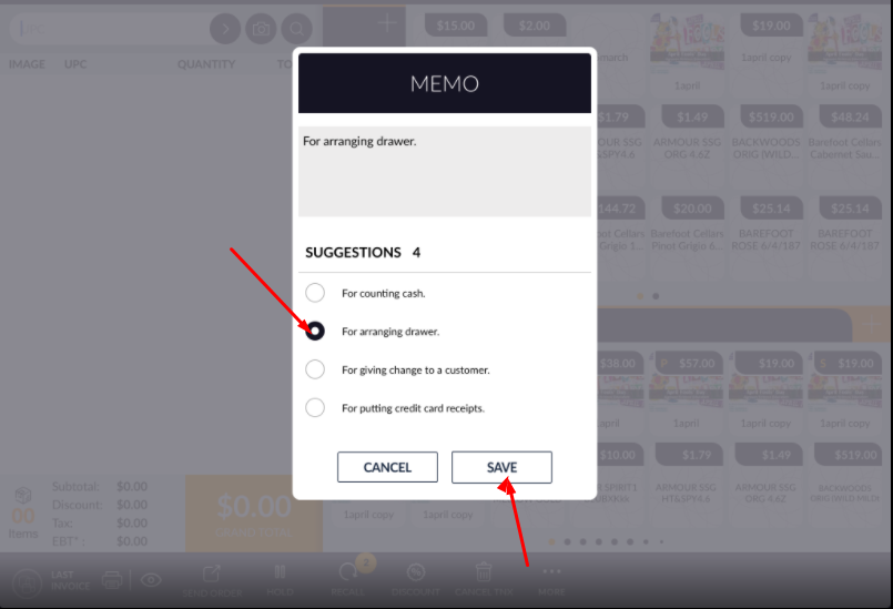 - Keep no sales memo option off.