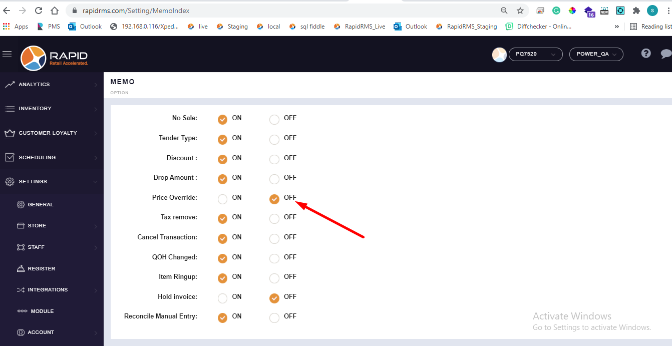 - When change price item then there is no pop up for memo.