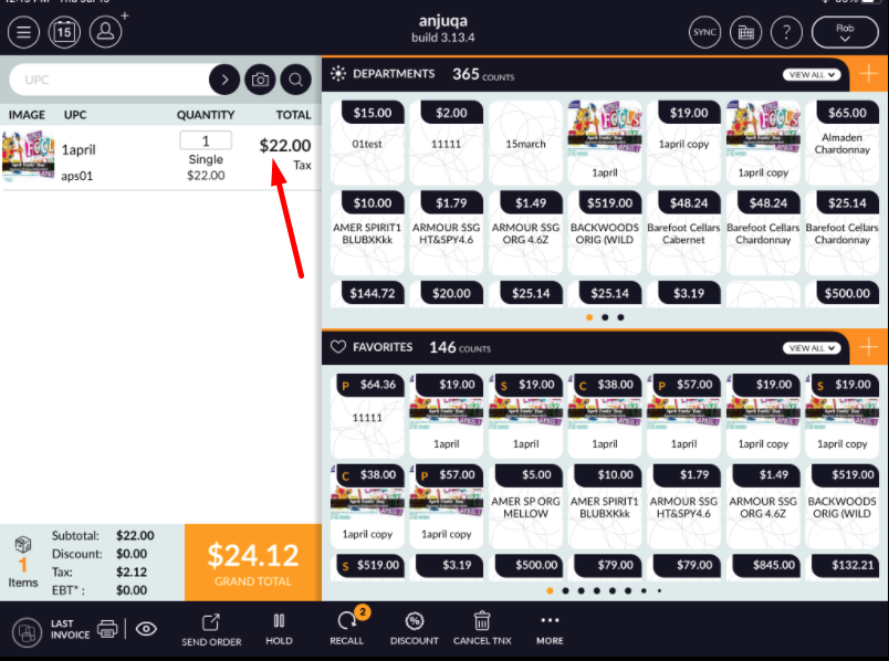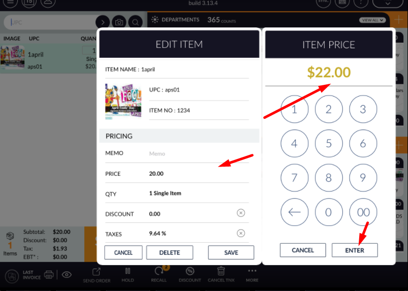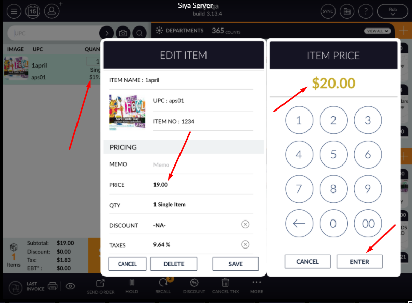 - Ring up item and swipe ring up item for edit.