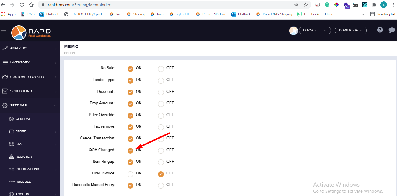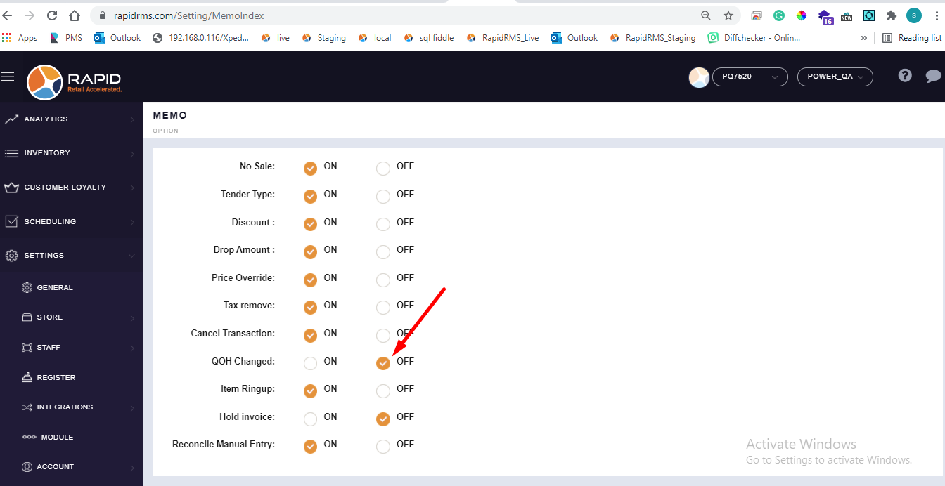 - Keep memo option for qty oh change OFF.