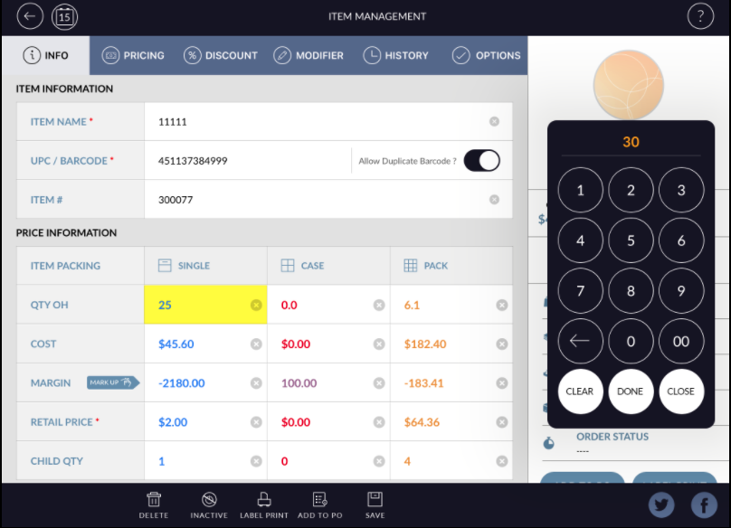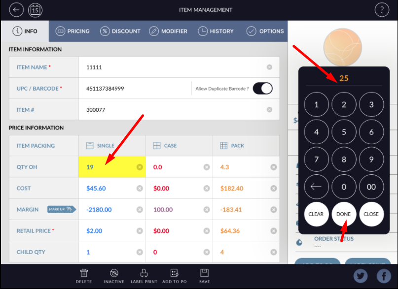 - Click on that for change qtyOH for that item.