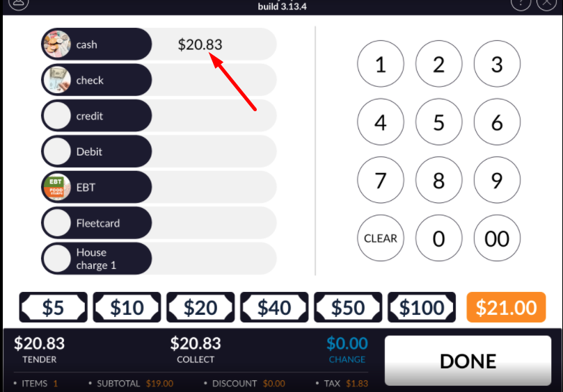 - Review there is one option for tender type.