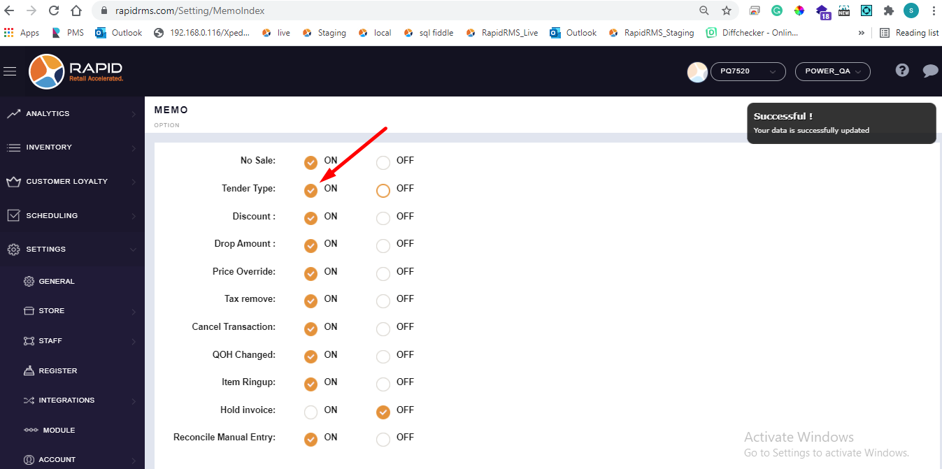- When from bof tender option on then only in payment type memo option will display.