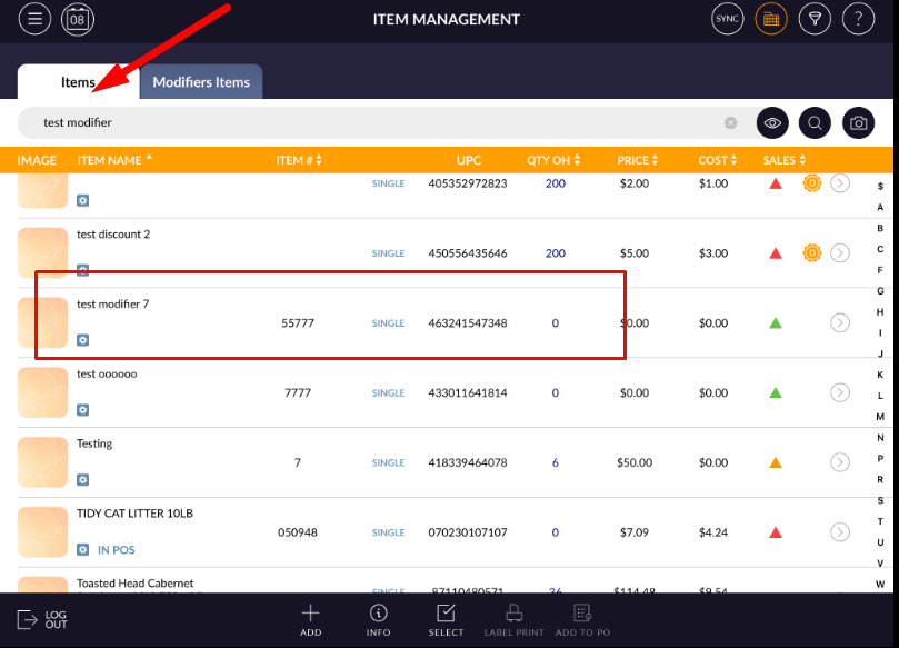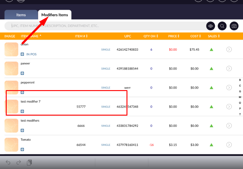 When modifier item is created then it would be listed in modifier item list.