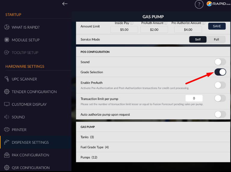 - If grade selection option is ON then one pop up is blink at the time of pay at pump and from there