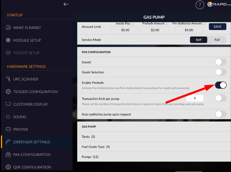 - When enable pre auth option ON that means it start activation for pre authorization and post authorization transaction for credit card.