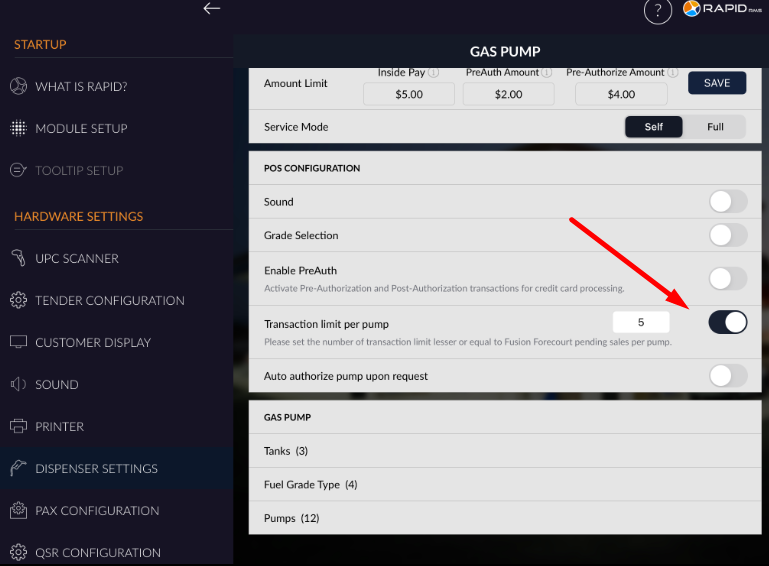 - When Transaction per limit option ON then for particular pump you can set transaction limit for pending payment.