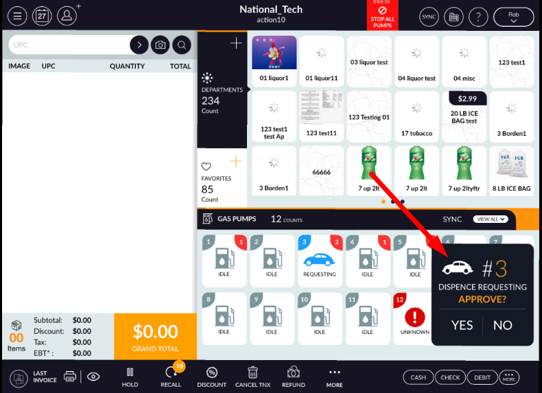 - And if option is enable then if select any pump then in POS it will ask for permission for start