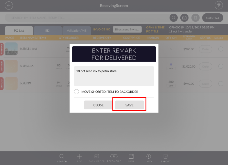 - Now enter remark for delivered and tap on ‘Save’ button.