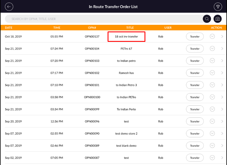 - Now you will see transfer Order In ‘In Route Order’ module of inventory transfer and ‘Receiving
