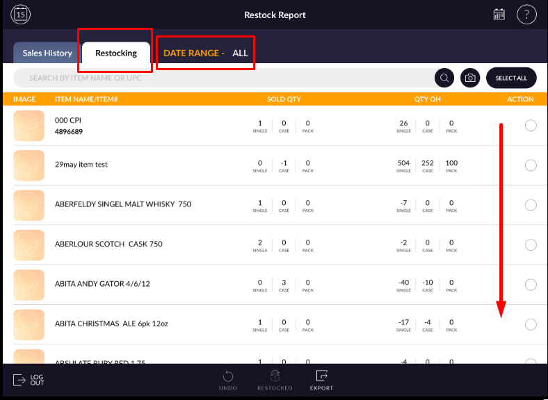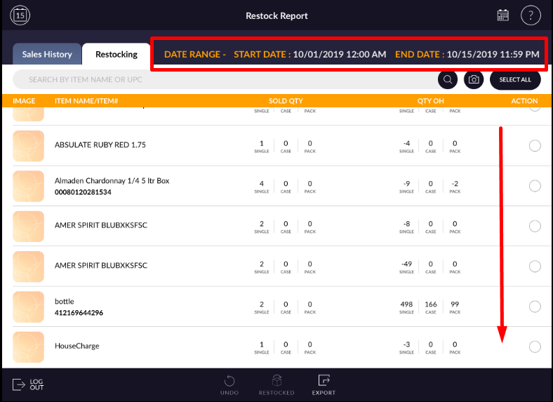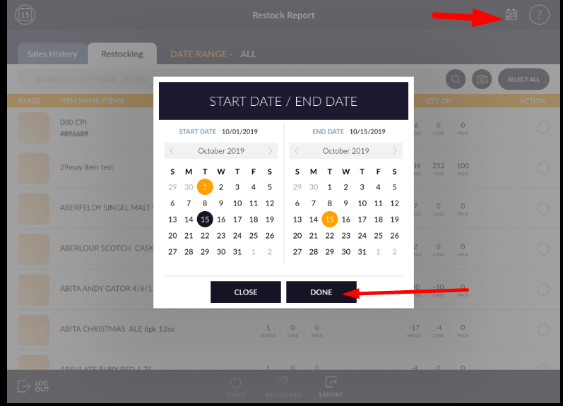 - If you want to find at when an item is restocking and filter according to date range then click on the calendar icon which is available at the top right corner.