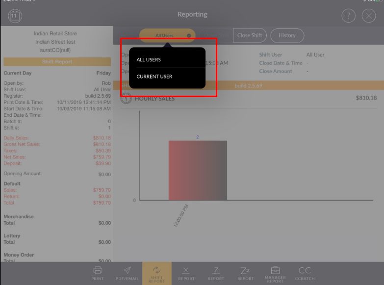 How to view shift report user wise?